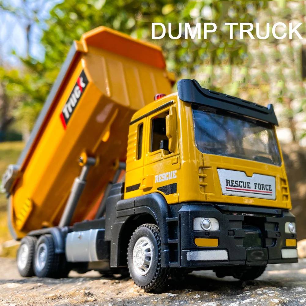 1/32 Scale Toy Car Model Engineering Dump Truck Alloy Diecast Sound Light Pull Back Tipping Bucket Tipcart Vehicle For Boys Gift