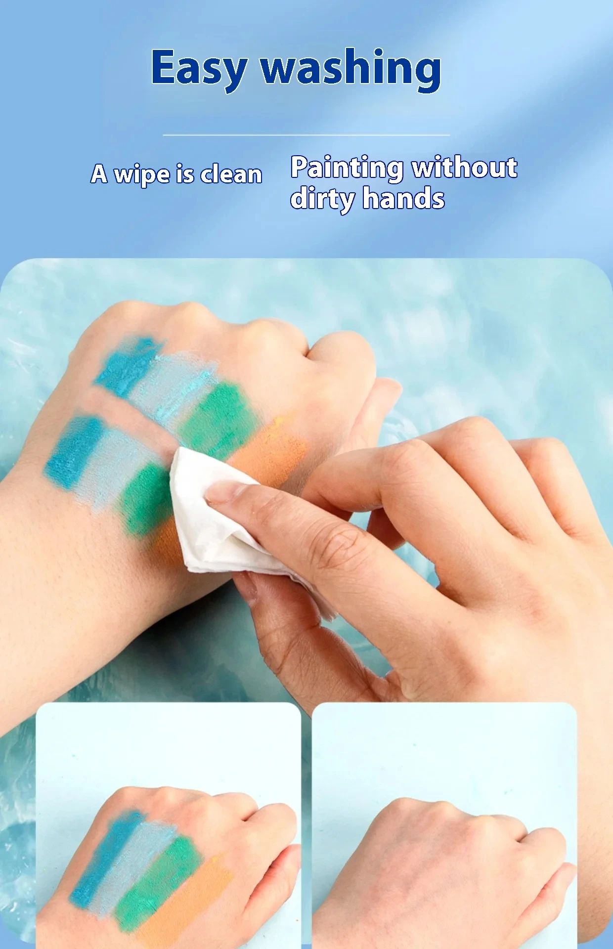 Easy to wash with water,Wipe clean paintings without getting your hands dirty.