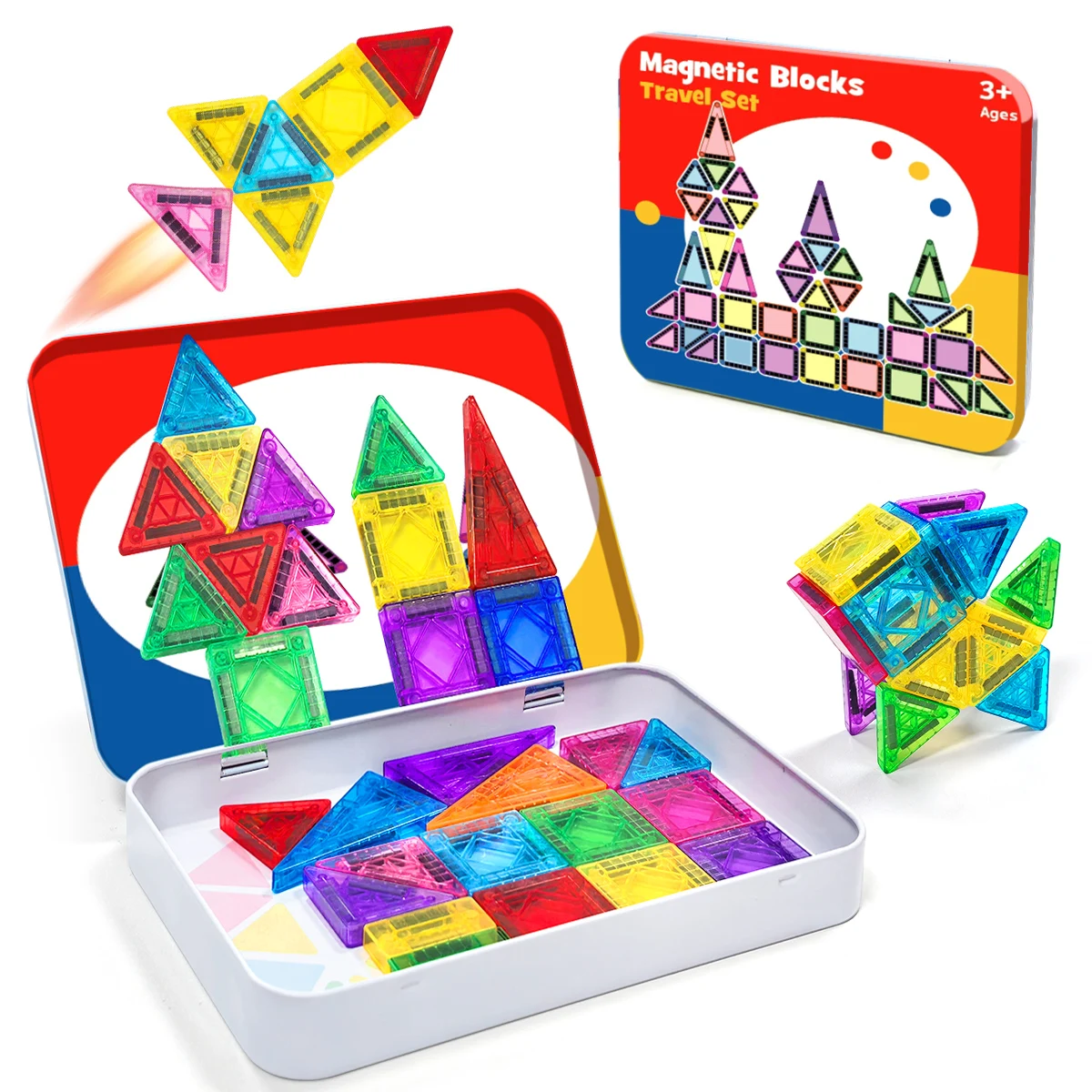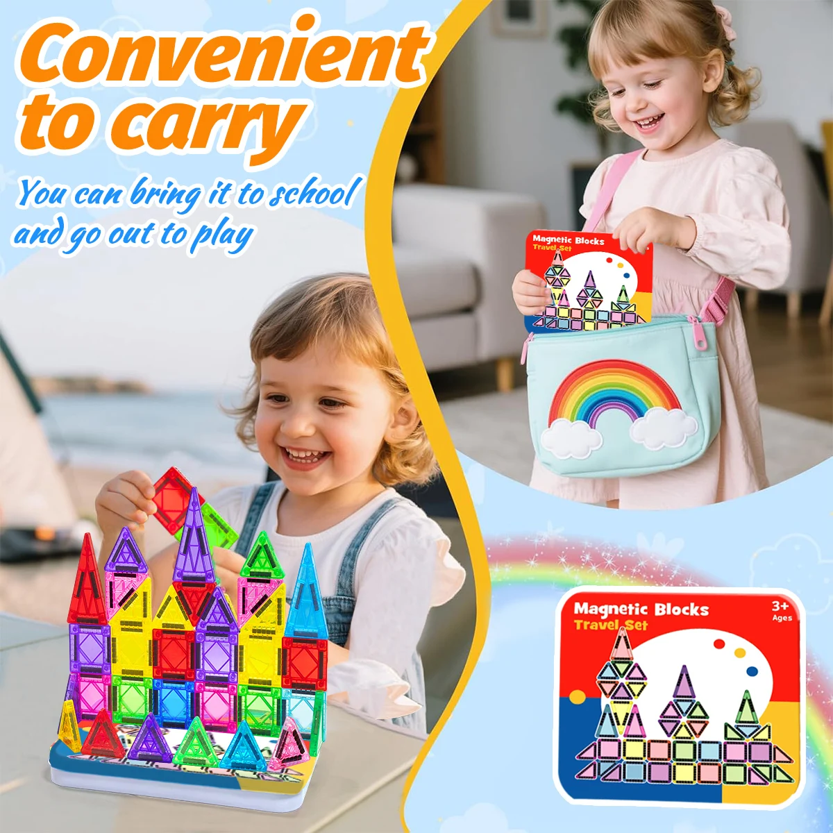 62PCS Magnetic Building Blocks Construction Set DIY Montessori Sensory Educational Toy For 3+ Old Kids Gift With Iron Box