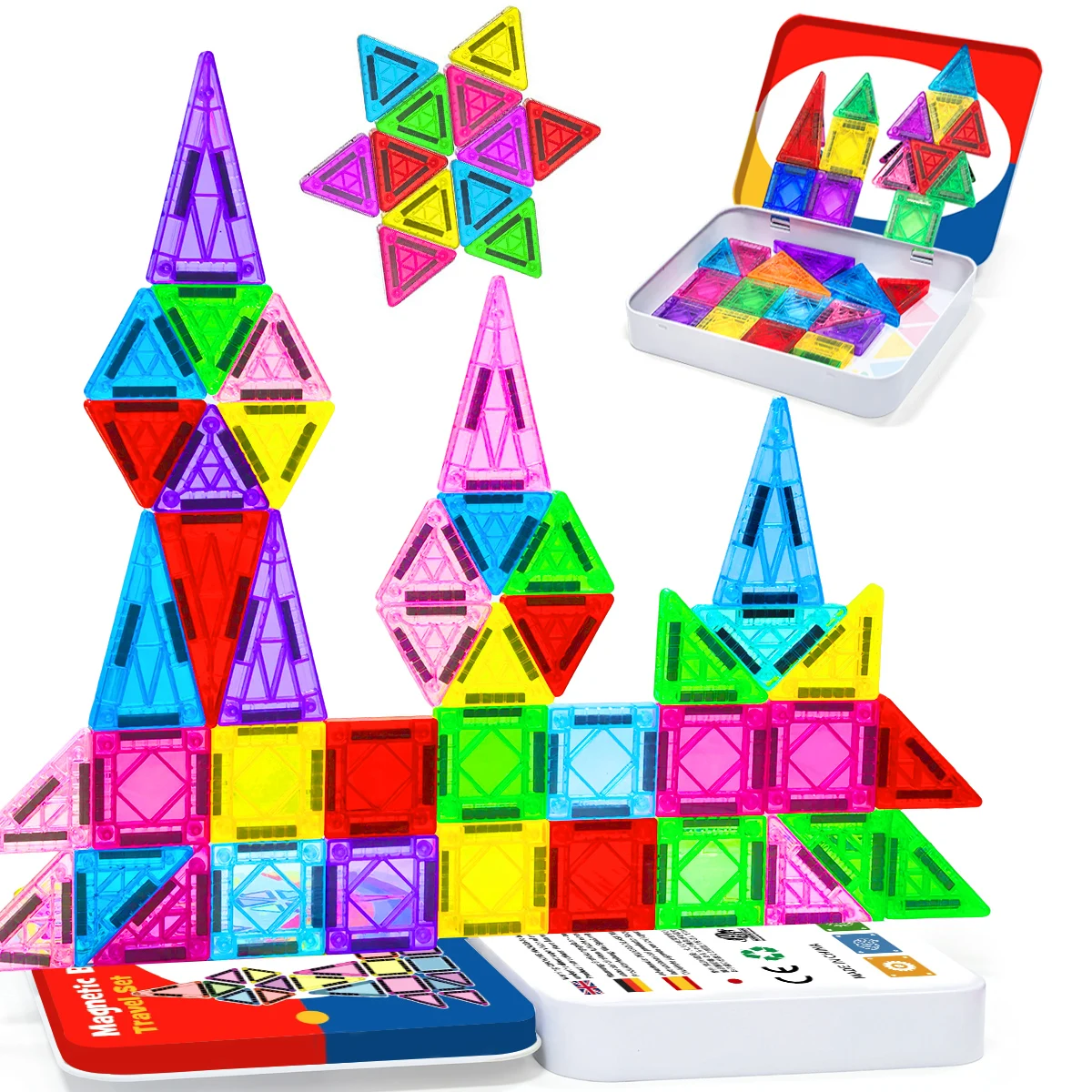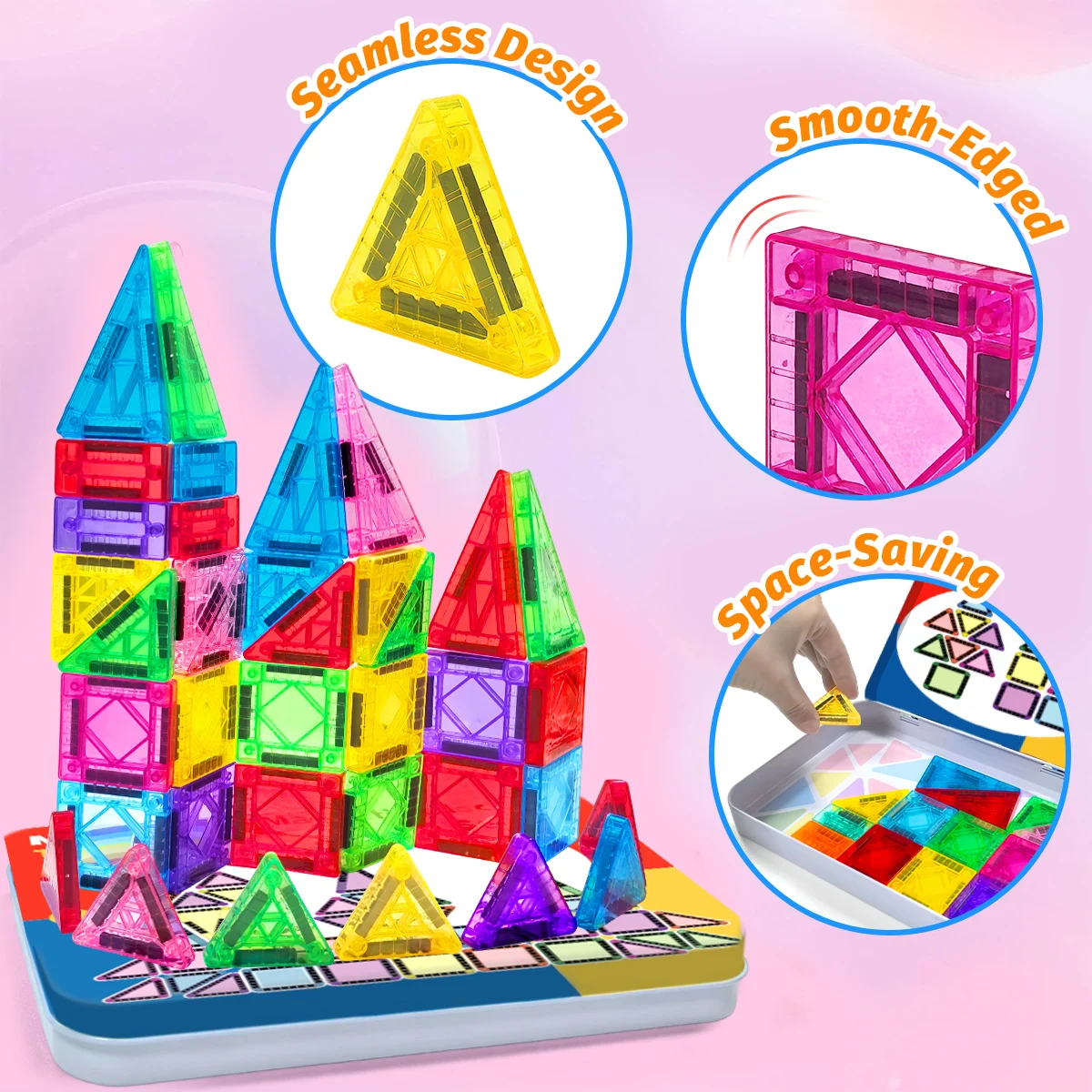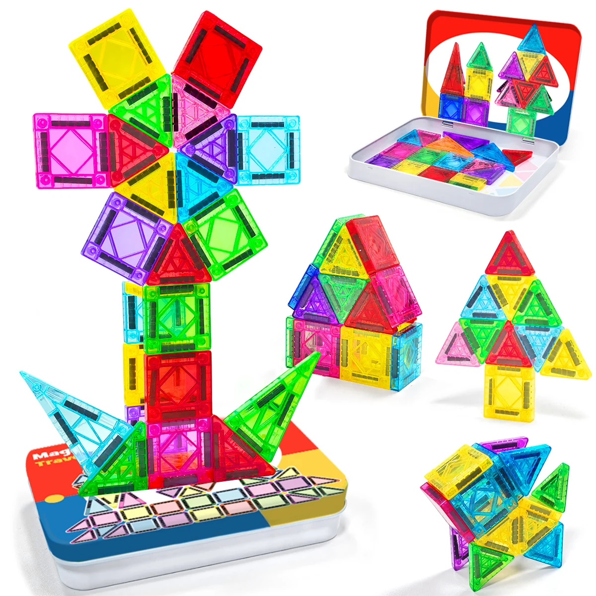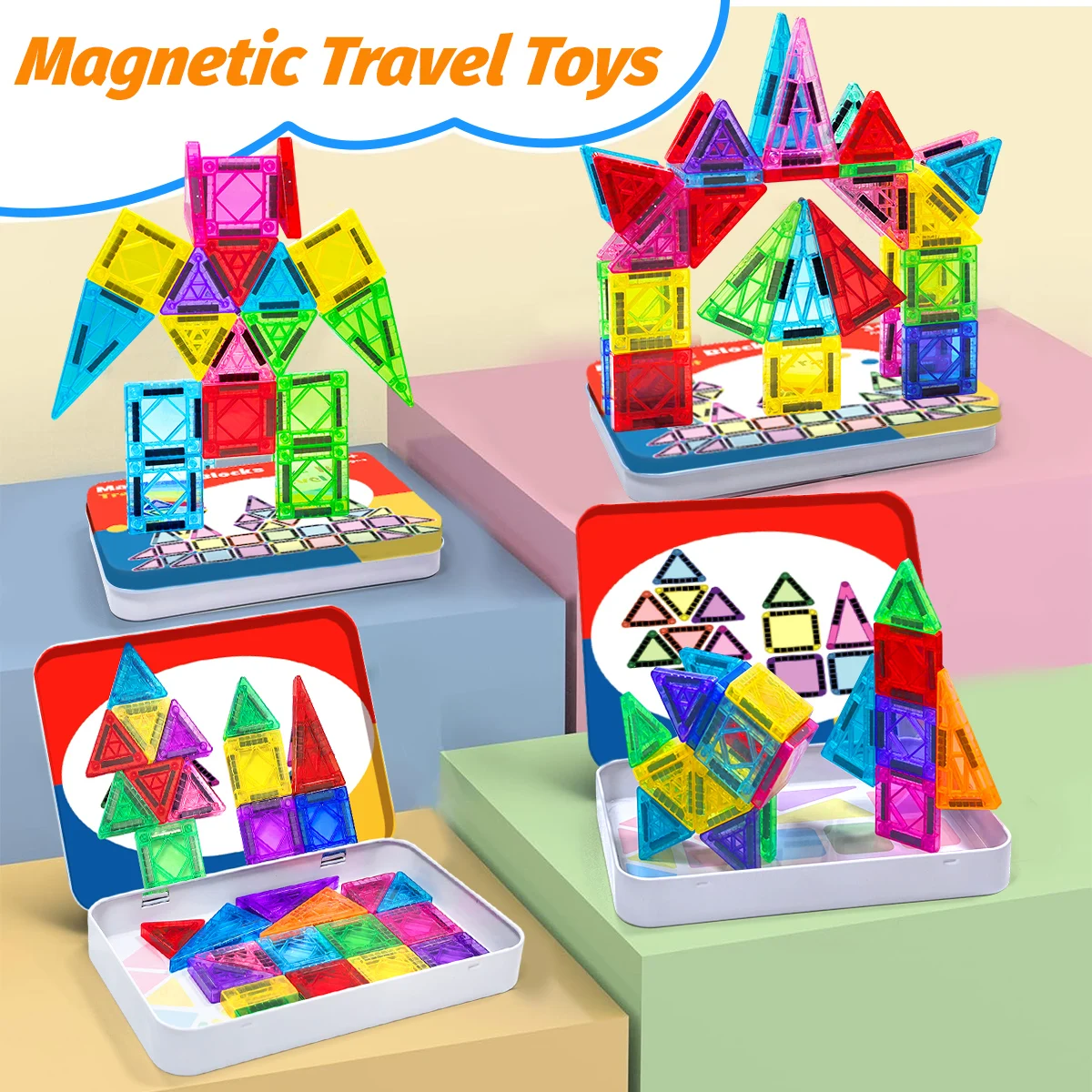 62PCS Magnetic Building Blocks Construction Set DIY Montessori Sensory Educational Toy For 3+ Old Kids Gift With Iron Box