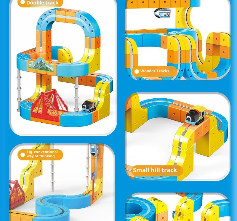 Kids Assembly Magic Track Car Racing Runway Stem Educational Train Rail Cube Magnetic Toys Set Electric Car DIY Building Block