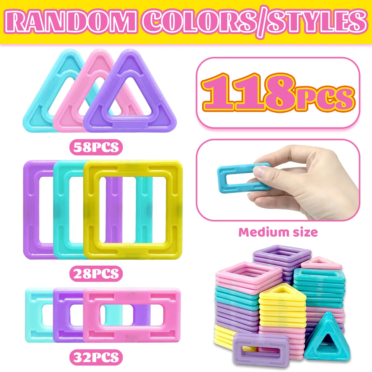 Macaron 3D Magnetic Blocks Set Toys For Children Boys Girls Educational Sensory Building Magnetic Toy Gifts 58/88/118PCS