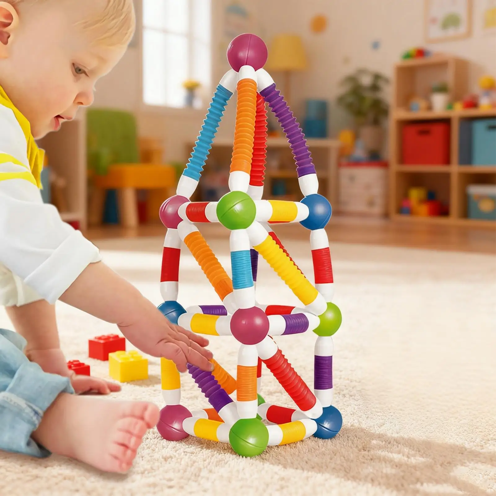 1.Bendable Rods: Featuring bendable and adaptable elements, this magnetic set allows for 3D spatial creativity, enhancing problem-solving abilities while evolving alongside a child’s developmental milestones, great for collaborative or solo exploration