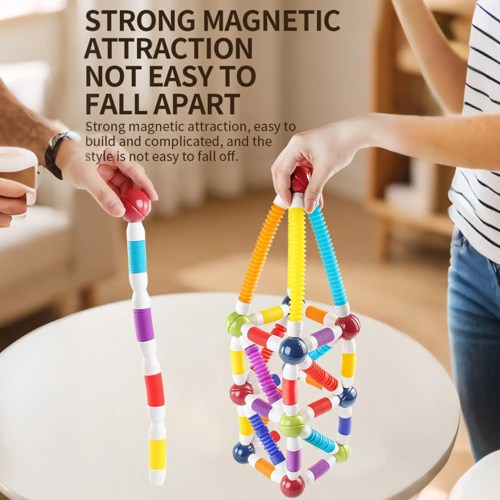 1.Bendable Rods: Featuring bendable and adaptable elements, this magnetic set allows for 3D spatial creativity, enhancing problem-solving abilities while evolving alongside a child’s developmental milestones, great for collaborative or solo exploration