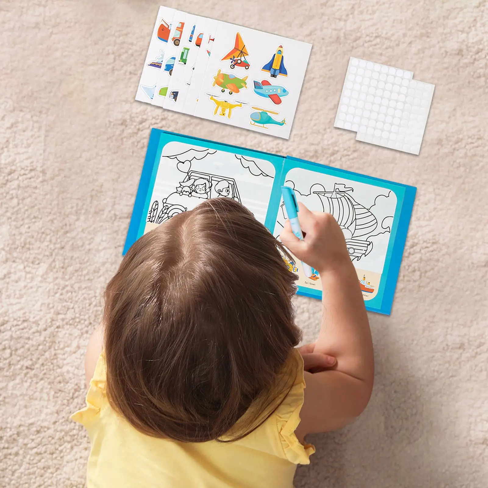2.Long-Lasting Entertainment: Combining durable materials and repositionable stickers, the water drawing mat delivers extended entertainment value by providing endless opportunities for imaginative play, ideal for travel, quiet time, or interactive family bonding activities at home