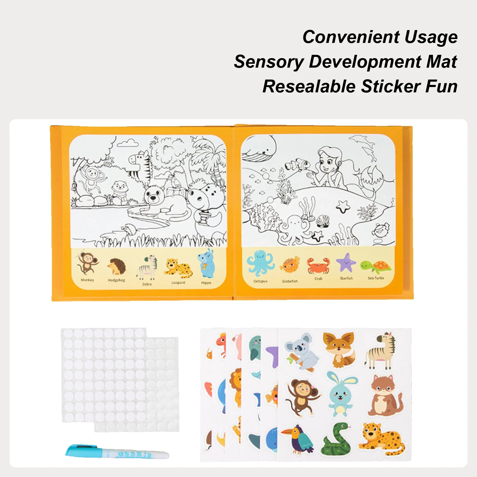 4.Creative Skill Development: This aqua drawing mat enhances hand-eye coordination and color identification, as it introduces young learners to animals and transportation themes through engaging play that promotes focus and calmness in both indoor and classroom environments