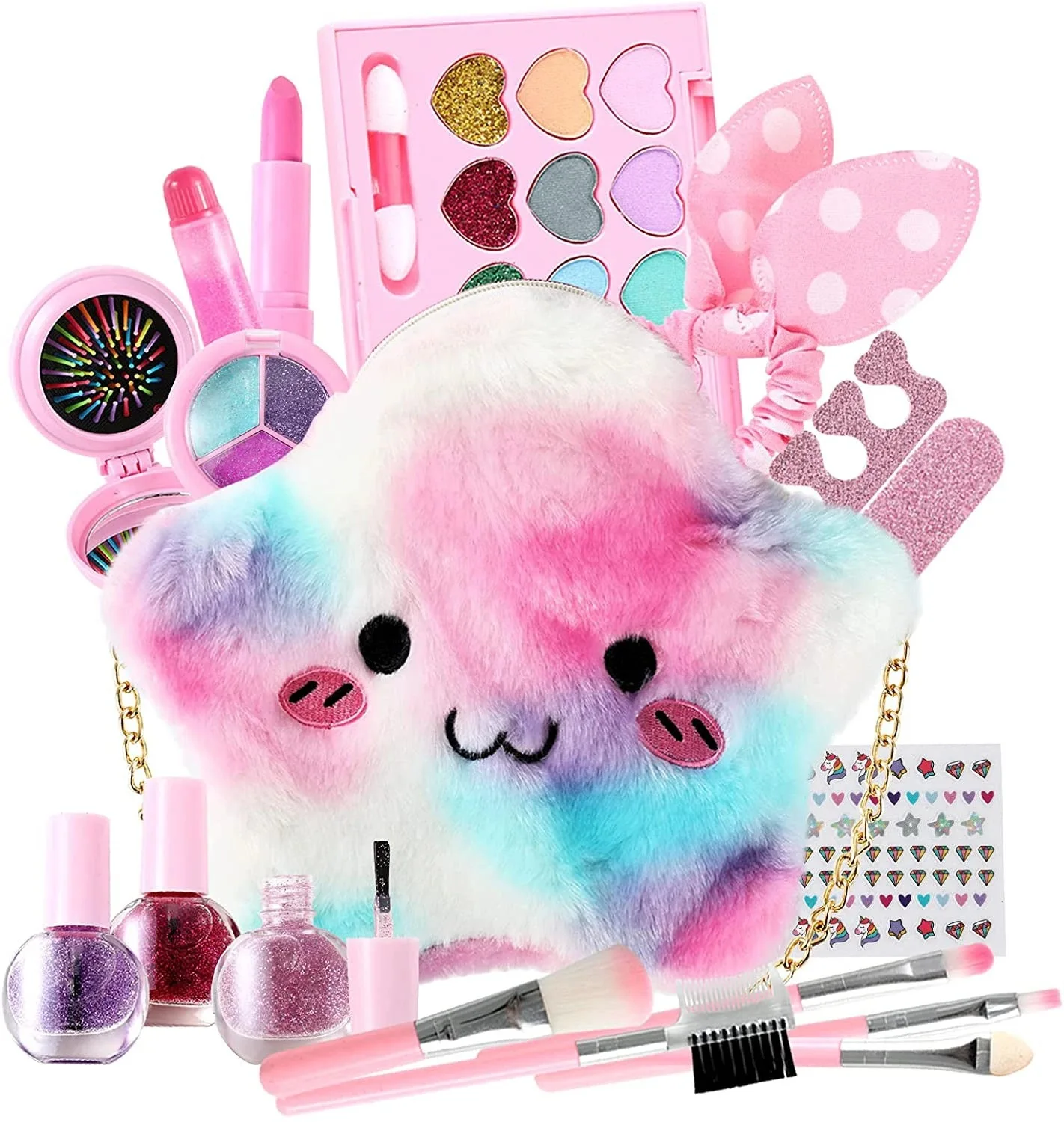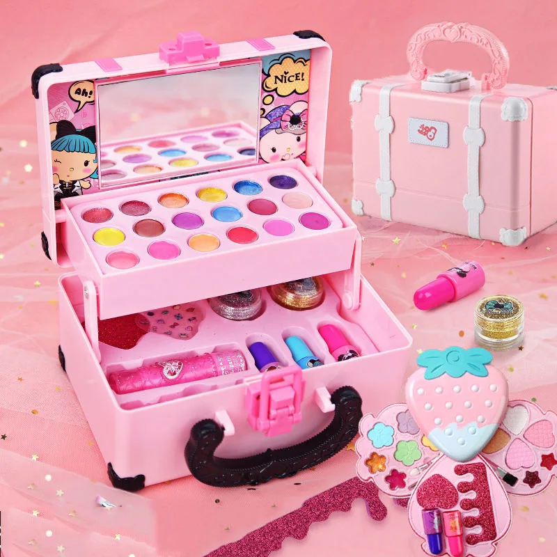 3,Washable Toy: Anytime you give your child a toy that you want to ensure their security. This cosmetic set provides children with toys for innovative games! This children's cosmetic set will not leave stains on clothes or furniture, and it can be washed.